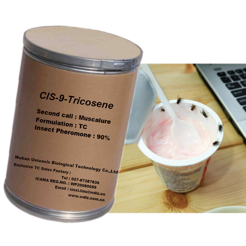 Z-9-Trikosen, erkekleri çekmek için dişi ev sinekleri (Musca domestica) tarafından üretilen bir seks feromonudur. Arılarda, sallama dansı sırasında salınan iletişim feromonlarından biridir. Bu ürün, şirketimiz tarafından kimyasal sentez yöntemi kullanılarak sentezlenen bir böcek feromonudur. Hamam böcekleri ve sinekler üzerinde iyi bir çekme etkisine sahiptir. Böcek ilaçları ile birlikte kullanıldığında böcek ilacı verimliliğini artırabilir. Bu ürün sadece böcek ilaçlarında bir çekici olarak kullanılır.